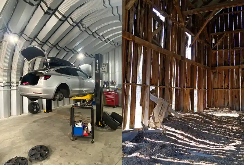Steel frame barns are made entirely of steel. They tend to be long-lasting, versatile, and durable. They are typically easier to maintain and often up to 40% less expensive to insure due to their strength.