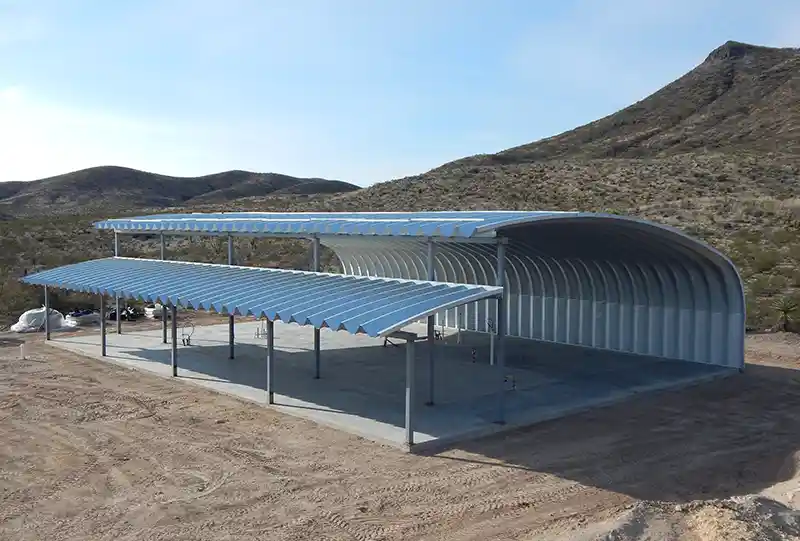 • Open sided, partial arch structure